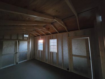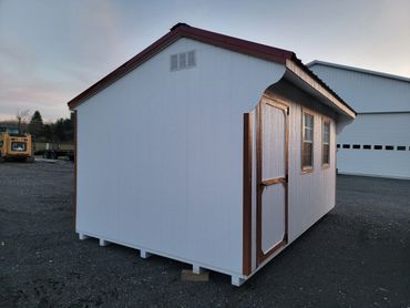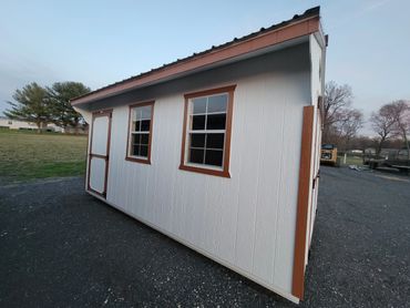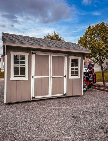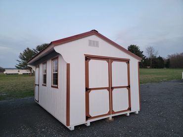 Quaker-style sheds are characterized by their practical and simple design, often associated with the Quaker tradition of minimalism and functionality. These sheds typically feature a unique gambrel roof, which provides extra headroom and allows for additional storage space in the loft area.